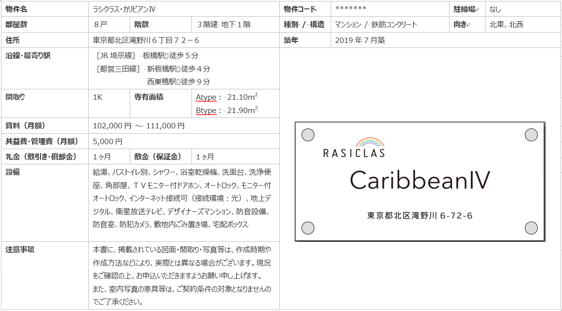 ラシクラス・カリビアンW 物件概要です